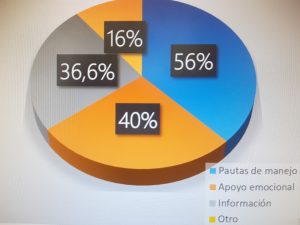 Se realizó un proyecto de estudio llevado a cabo en el marco de un trabajo de fin de Master de Marta Saavedra (Master Universitario de Psicología General Sanitaria de la Universidad de Santiago de Compostela) en colaboración con el CPAP/CRMF. En dicho estudio se analizaron las necesidades que manifestaron tener los familiares y cuidadores de usuarios/as con DCA que participaban en un programa de intervención interdisciplinar en nuestro centro. En esta evaluación, como puede verse en la figura 1, se detectaron necesidades en cuanto a aumentar el conocimiento sobre el DCA y pautas de manejo ante conductas típicas en el DCA y sobre estrategias para promover el bienestar emocional de los propios cuidadores.