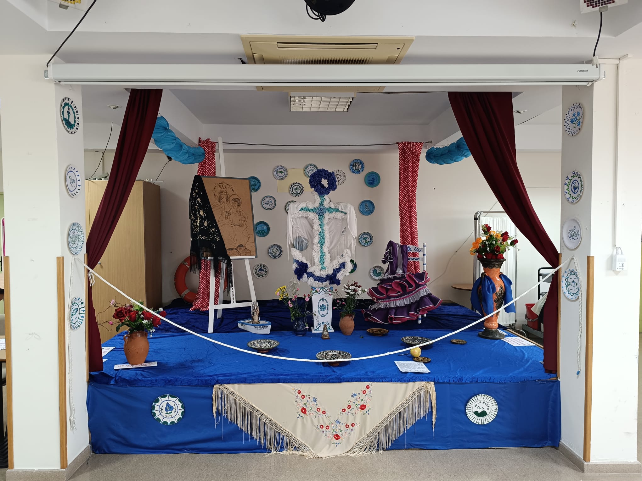 Siguiendo una tradición muy andaluza, el Centro Social de Mayores del Imserso en Ceuta ya tiene su Cruz de Mayo, elaborada con un gusto exquisito por Sonsoles, la monitora del taller de manualidades, y socios y socias de su taller. Dicha cruz presidirá este mes todas las actividades que se desarrollen en el salón de actos. Y además, como mandan los cánones, en la misma se ha incluido la famosa tijera y el pero, con lo que cualquier pero que pueda ponérsele está de más.