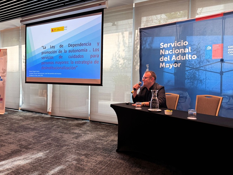 Durante la semana del 20 al 24 de enero, el Instituto de Mayores y Servicios Sociales (Imserso), ha participado, en Santiago de Chile como socio del proyecto sobre «Elaboración de estándares de calidad para centros diurnos, cuidados domiciliarios y condominios de viviendas tuteladas» del Servicio Nacional del Adulto Mayor (SENAMA).