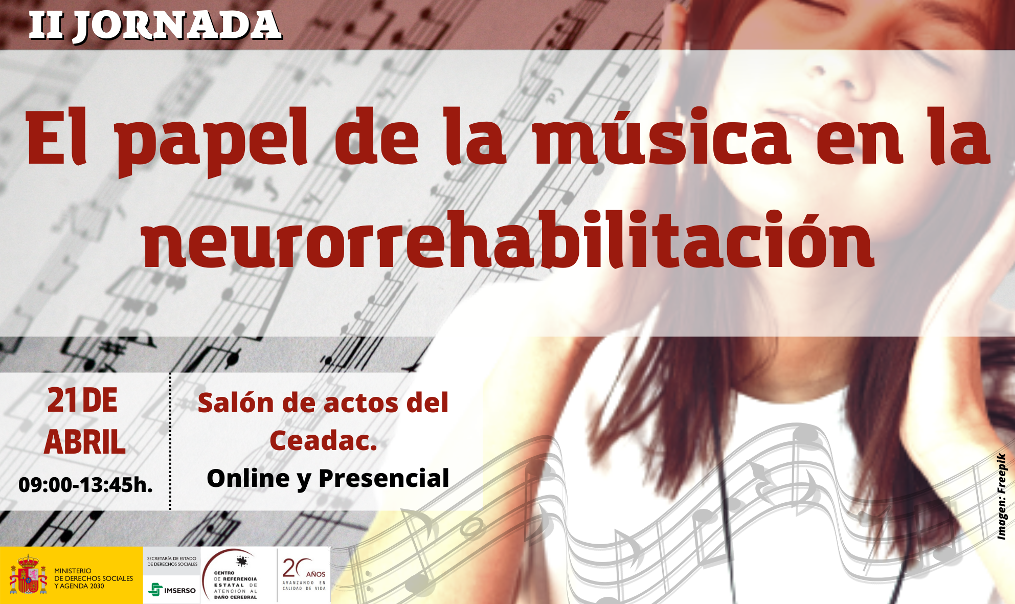 El Centro de Referencia Estatal de Atención al Daño Cerebral (Ceadac), dependiente del Imserso, celebra la II Jornada: El papel de la música en la neurorrehabilitación.