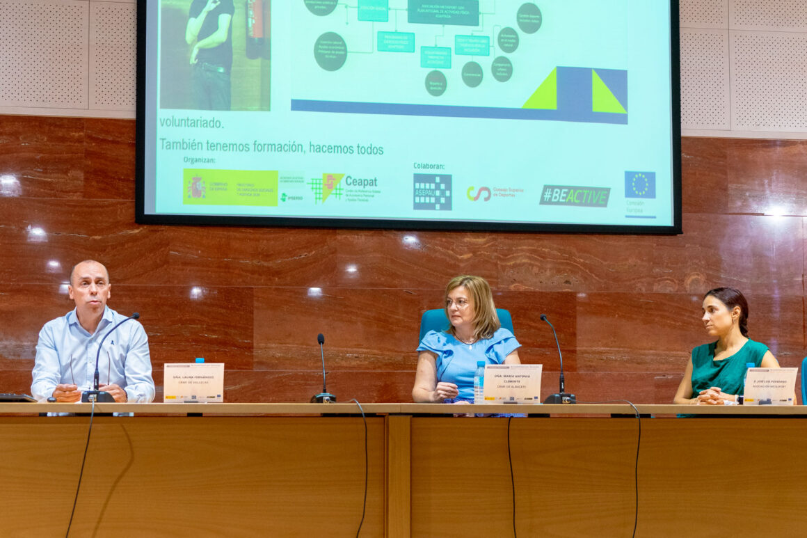 La segunda mesa redonda moderada por Mª Antonia Clemente Parrón, responsable de formación del CRMF de Albacete, la inició Laura Fernández Gil, terapeuta ocupacional del CRMF de Vallecas, que seguida por José Luis Povedano, director de la Asociación Metasport y encargado de la gestión del programa socio-deportivo del CRMF de Albacete. Ambos expusieron los proyectos de deporte implementados en estos centros del Imserso, las potencialidades de los mismos y las dificultades encontradas para llevarlos a cabo; sin duda un ejemplo magnífico de puesta en práctica en centros del Imserso que trabajan por y para la discapacidad y en la línea de la Actividad Física (AF) y el deporte.