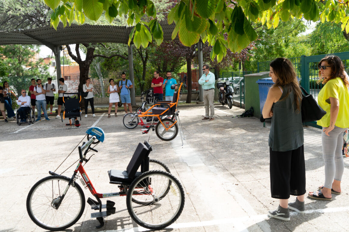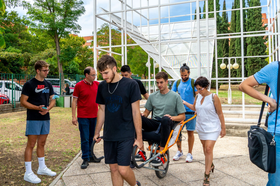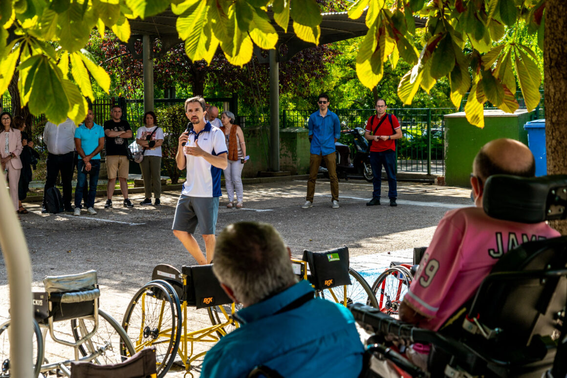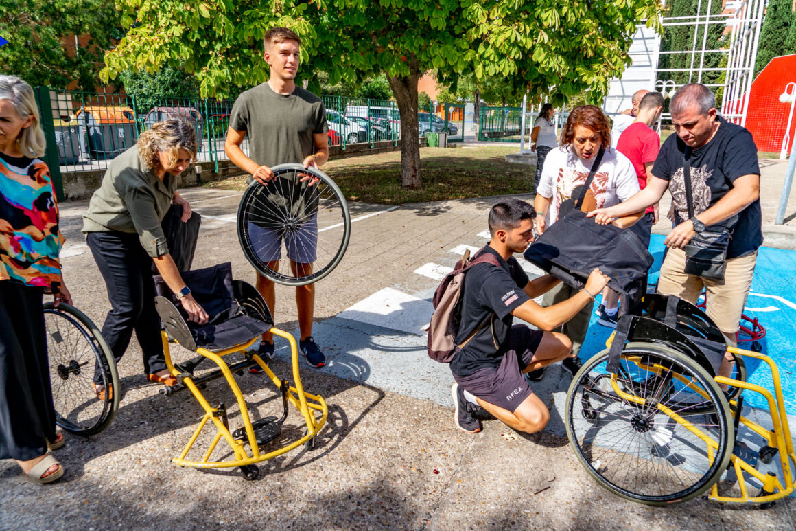 La jornada tuvo una primera práctica en el exterior de las instalaciones del Ceapat con Javier Pérez y sus alumnos de la Escuela de Doctorado y del Grado de Ciencias del Deporte de la UPM. Javier explicó las partes de la silla de ruedas para el deporte; analizó el chasis, los asientos, los respaldos, la angulación de las ruedas posición de las mismas variando el eje de las ruedas y su autopropulsión adecuada para sacar el máximo rendimiento en el desplazamiento y para el objetivo deportivo protegiendo al máximo los hombros.