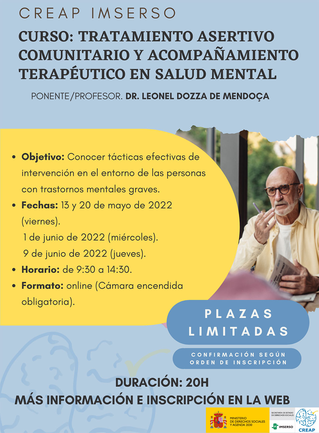 Metodología: 100% online. A través de la Plataforma de Imserso y la herramienta Cisco Webex para las clases en directo.
