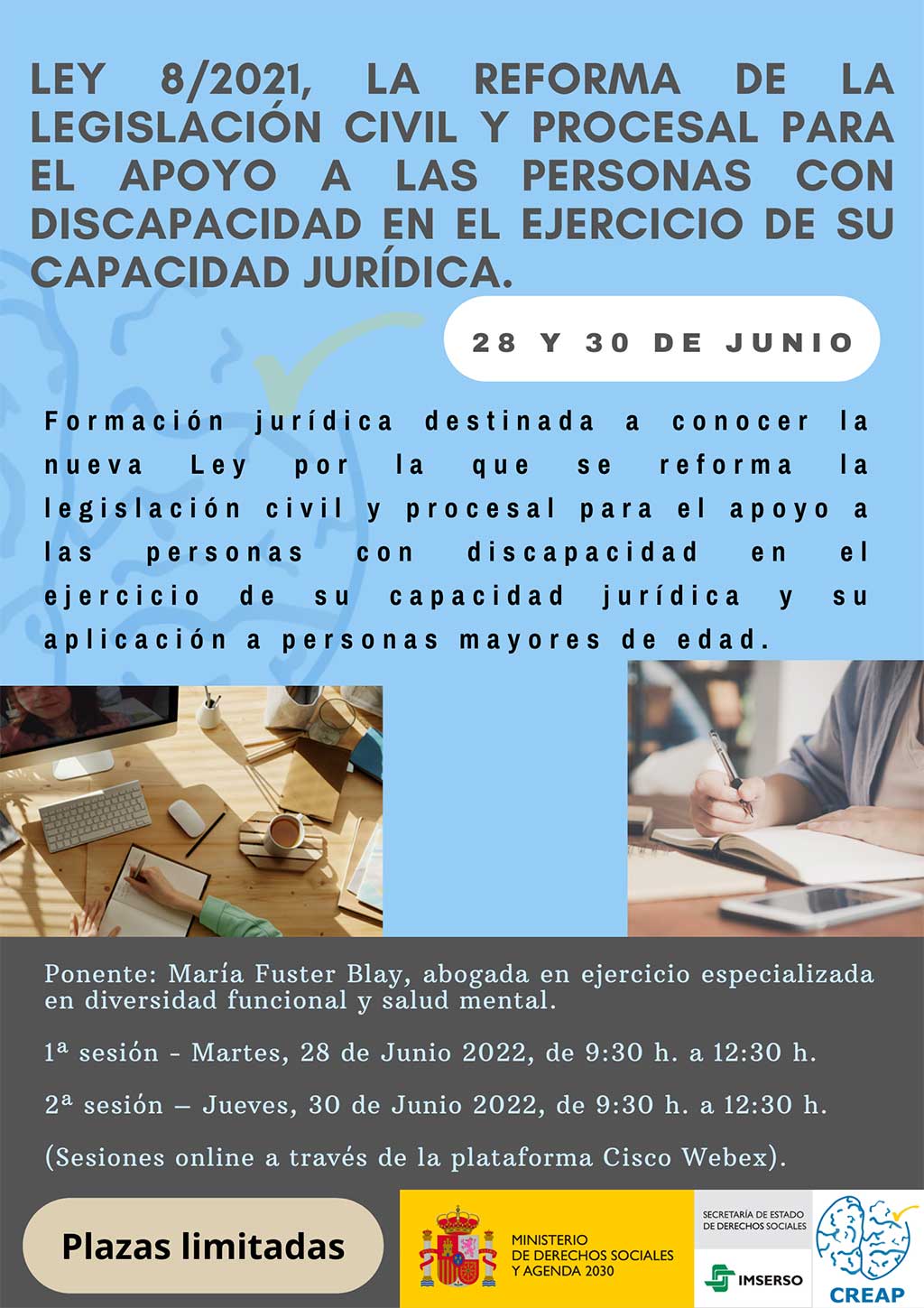 • Presentación de la nueva Ley 8/2021, de 2 de junio, por la que se reforma la legislación civil y procesal para el apoyo a las personas con discapacidad en el ejercicio de su capacidad jurídica por la que se reforma la legislación civil y procesal para el apoyo a las personas con discapacidad en el ejercicio de su capacidad jurídica (mayoría de edad).