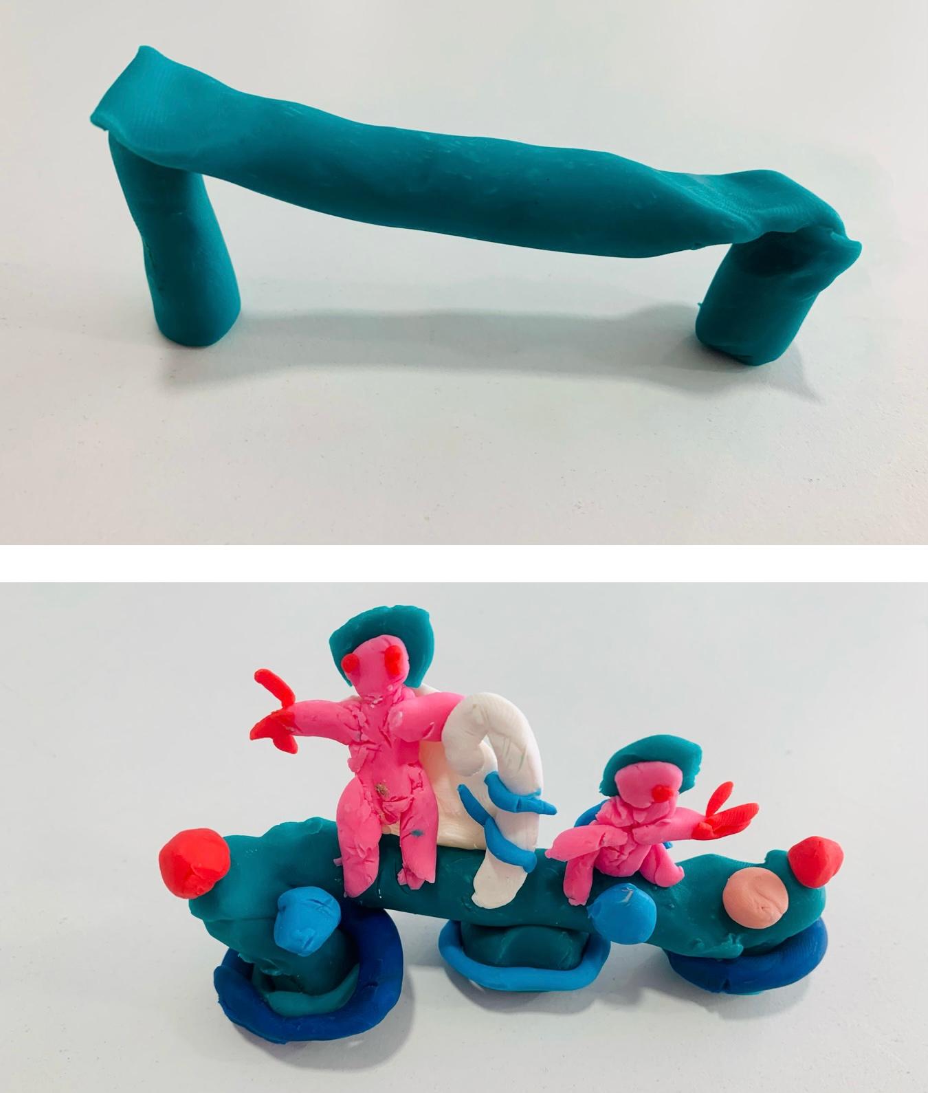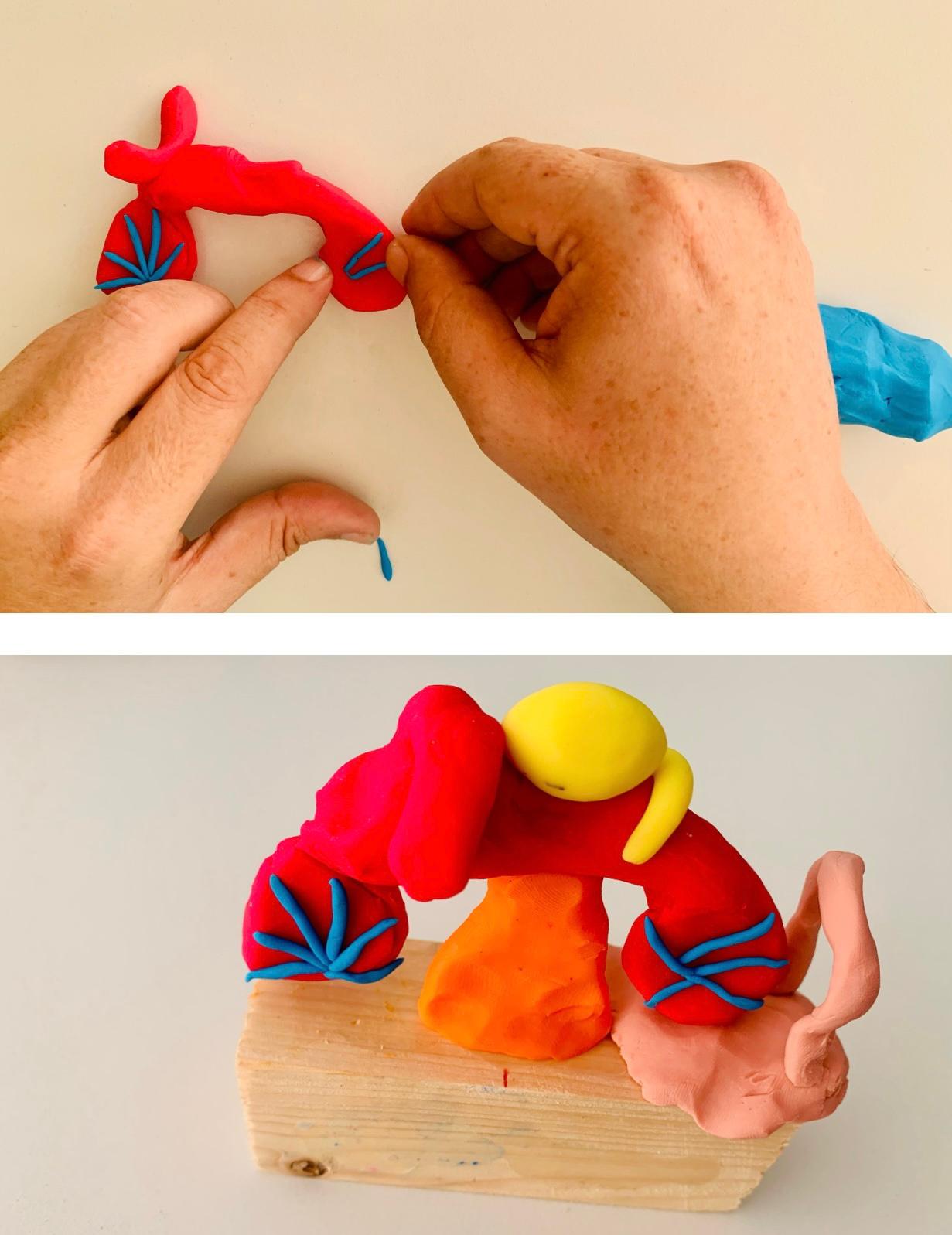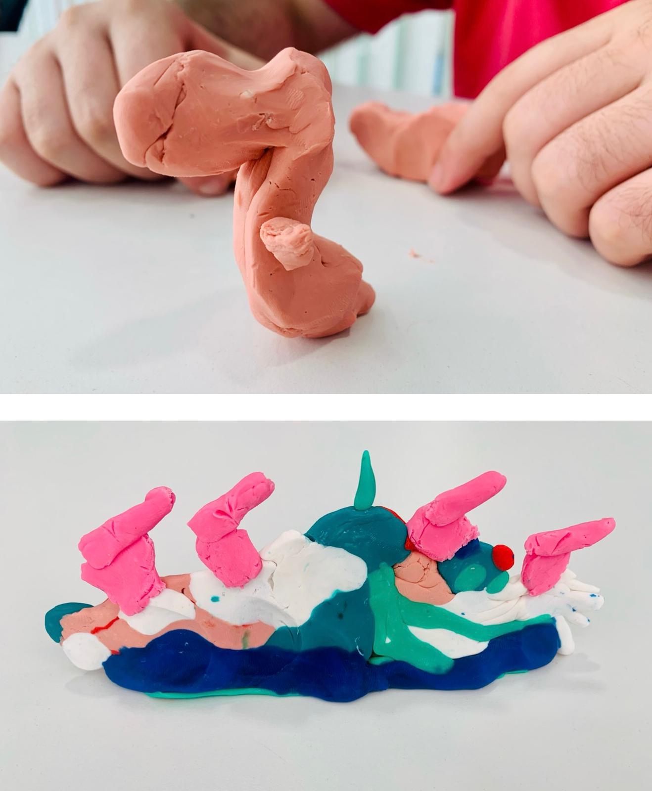 Con esta reflexión de uno de los participantes del grupo de Arteterapia cerramos una sesión fundamentada en la estimulación de la creatividad que parte de lo individual y llega a lo grupal. El proceso creador se convoca desde la observación de lo que el otro me propone sin saber qué es realmente. No podría ser de otra manera. Se permite así una proyección de las emociones propias y una intervención (si la hay) con materiales artísticos sobre una obra que no es de nadie y es de todos, transformándola y produciendo resultados estéticos genuinos y misteriosos. El arteterapia, según Jean-Pierre Klein, no revela lo que es, no señala lo que ya está allí, sino que atrae un movimiento hacia lo que puede ser, aquello que puede representarse en lo simbólico y entrar en proceso de una creación a la otra. Shepherd et al. (2008) y Spandler et al. (2007) mencionan que la participación en las artes puede ayudar a las personas a “redescubrir o reconstruir una identidad dentro y fuera de la de alguien con dificultades de salud mental” (p. 10). Wood (1986) y Crane (1996) consideran que una parte importante parte del papel del arteterapeuta es fomentar la imaginación de los usuarios del servicio y ayudarles a desarrollar una identidad artística. Este es un enfoque histórico y ampliamente aceptado en la práctica de la arteterapia y está muy en consonancia con el modelo de recuperación.