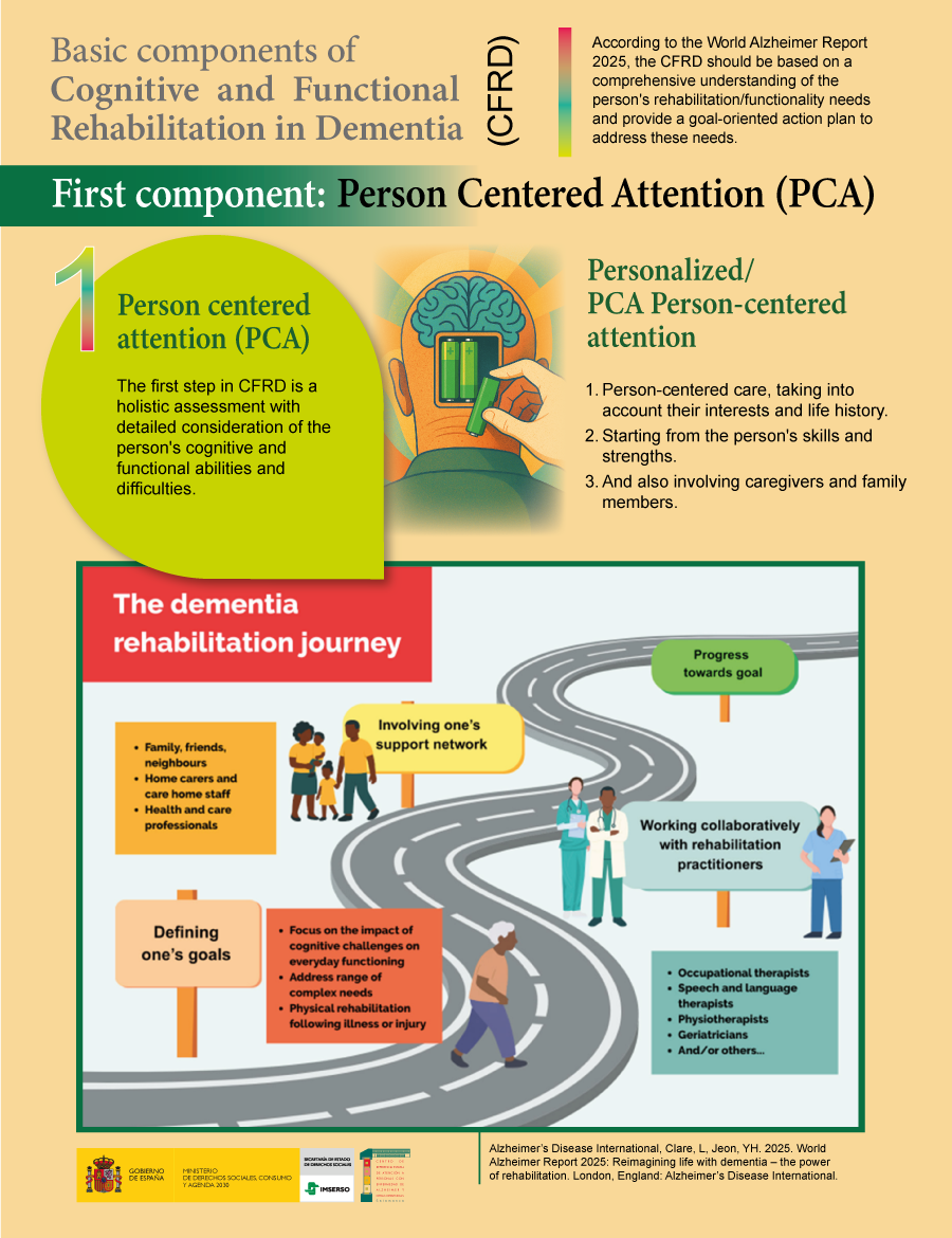 El CRE Alzheimer del Imserso ha publicado en su blog una nueva infografía divulgativa dedicada a los componentes básicos de la rehabilitación cognitiva y funcional en las demencias, desde el enfoque de la Atención Centrada en la Persona (ACP). Este recurso pretende facilitar la comprensión de los principios fundamentales que deben guiar las intervenciones terapéuticas dirigidas a personas con demencia, poniendo el acento en sus capacidades, preferencias y proyecto vital.